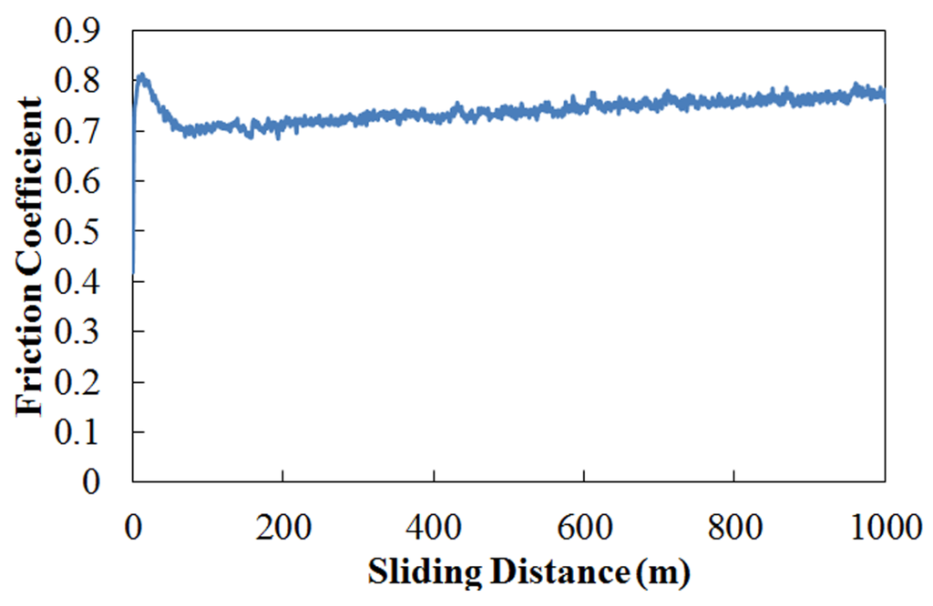 Typical friction coefficient curve for a thermally sprayed Fe3Al coating.