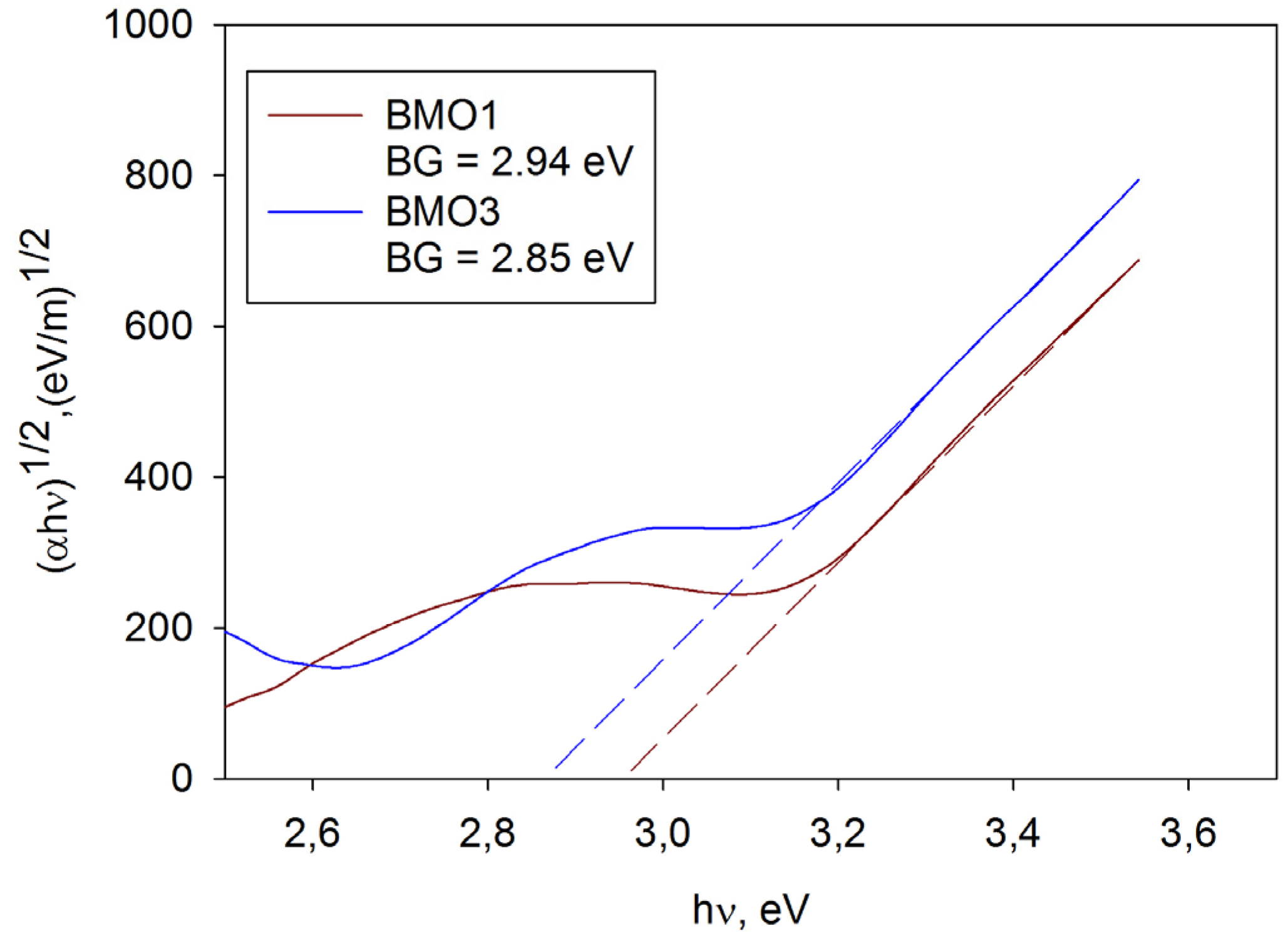 Examples of band gap calculation for coatings BMO1 and BMO3.