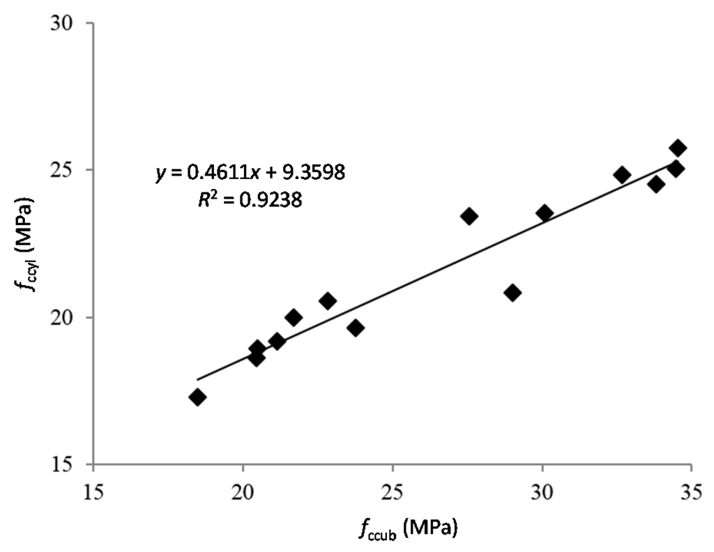 - Asociación Española de Normalización y Certificación. Testing Hardened Concrete—Part. 6: Tensile Splitting Strength of Test Specimens; UNE-EN 12390–6:2009; Asociación Española de Normalización y Certificación (AENOR): Madrid, Spain, 2009. [Google Scholar]