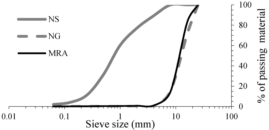 - Asociación Española de Normalización y Certificación. Tests for Mechanical and Physical Properties of Aggregates—Part. 6: Determination of Particle Density and Water Absorption; UNE-EN 1097–6:2014; Asociación Española de Normalización y Certificación (AENOR): Madrid, Spain, 2014. [Google Scholar]