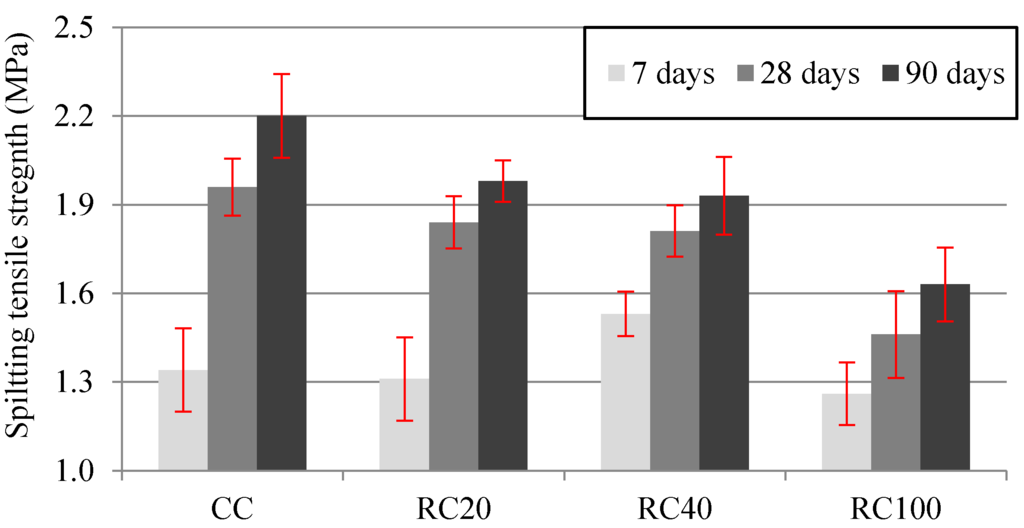 - Silva, R.V.; de Brito, J.; Dhir, R.K. Tensile strength behaviour of recycled aggregate concrete. Constr. Build. Mater. 2015, 83, 108–118. [Google Scholar] [CrossRef]