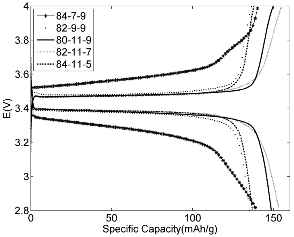 3.5. Variation of Component Ratios for the Positive Electrodes