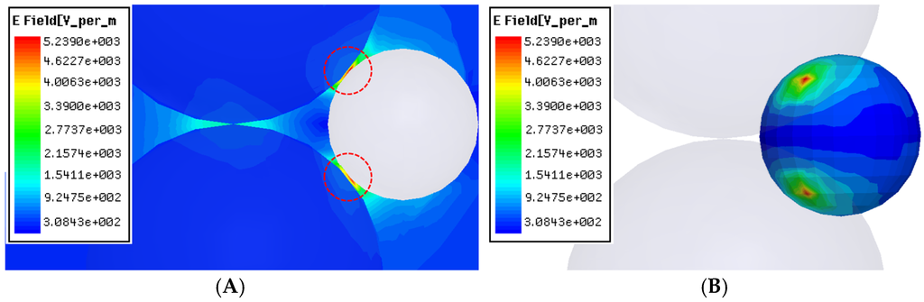 As can be seen, the E-fields within the micro-region of sintering neck between SiO