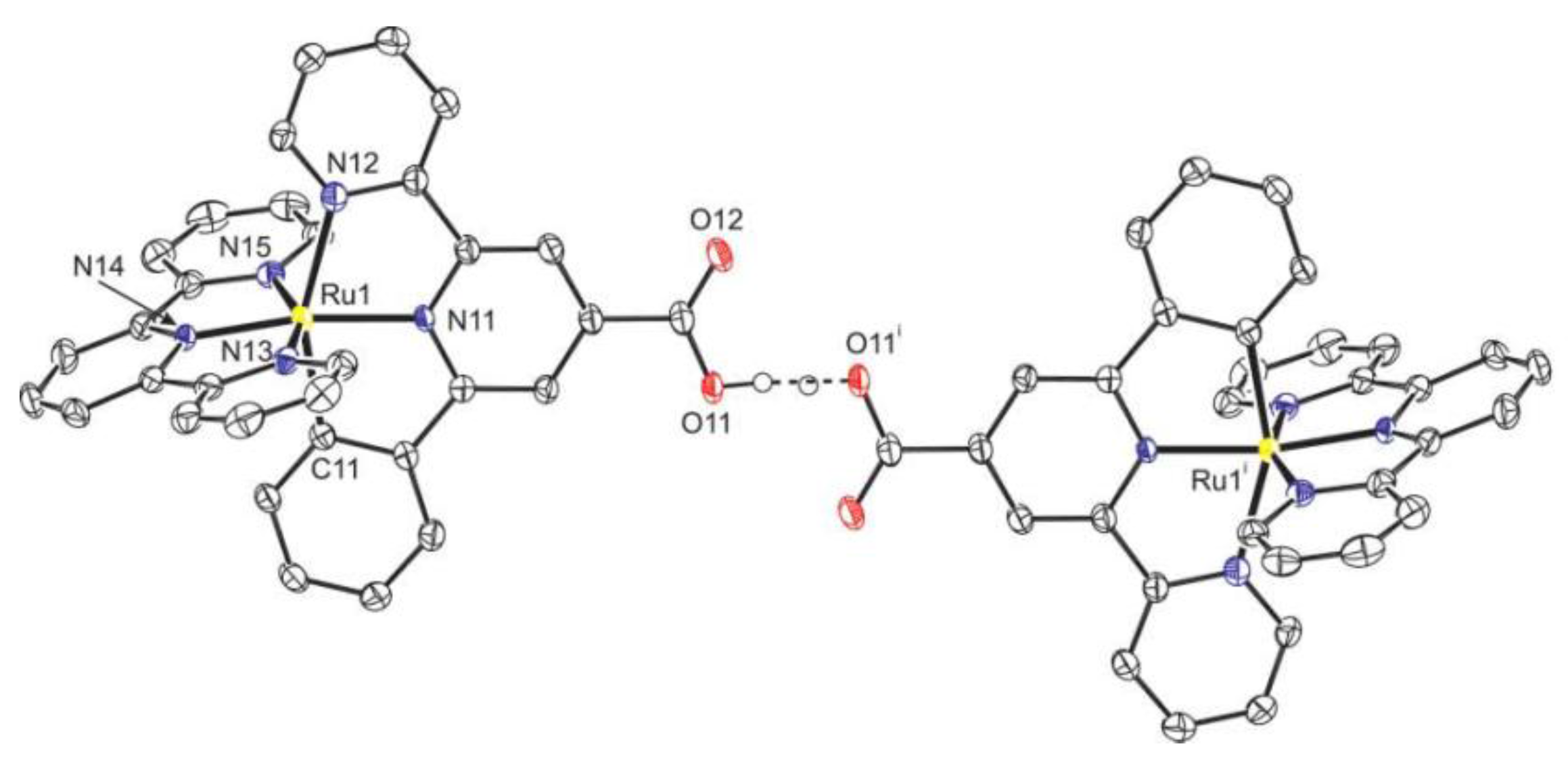 - Pal, A.K.; Hanan, G.S. Design, synthesis and excited-state properties of mononuclear Ru(II) complexes of tridentate heterocyclic ligands. Chem. Soc. Rev. 2014, 43, 6184–6197. [Google Scholar] [CrossRef] [PubMed]