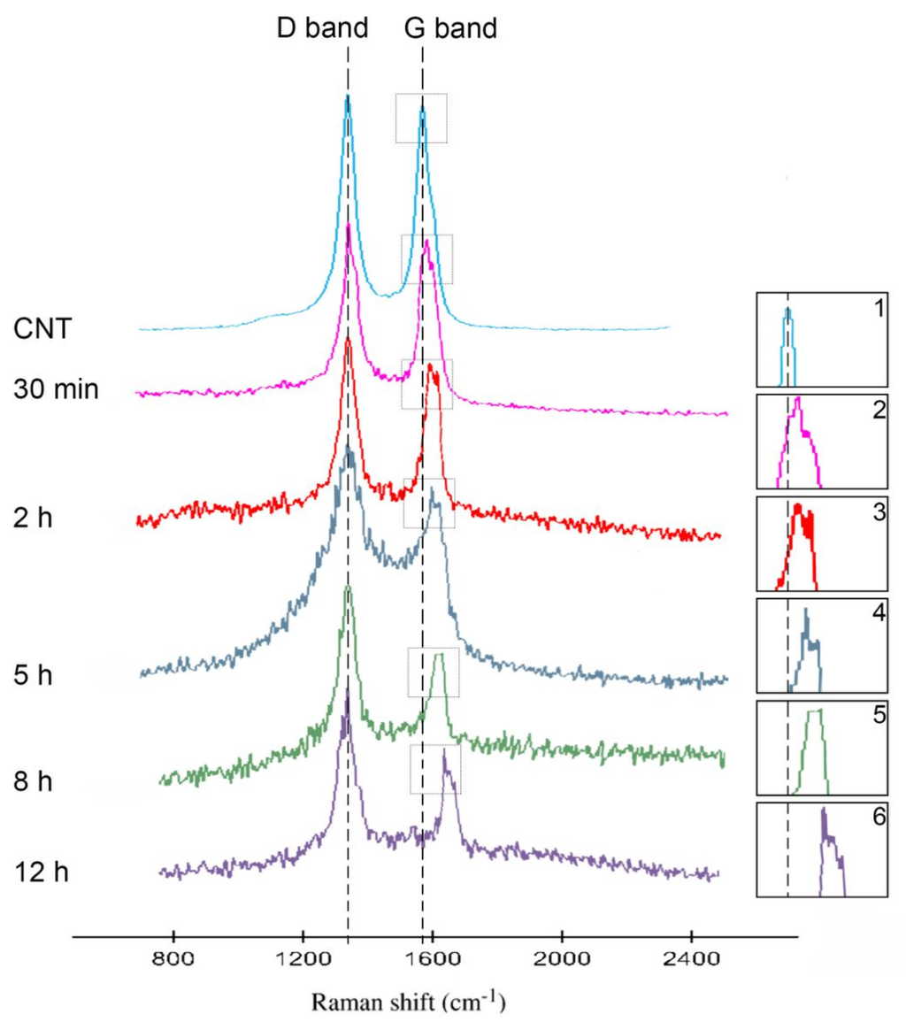 | Position of G-band | 1567 | 1575 | 1585 | 1605 | 1621 | 1655 |