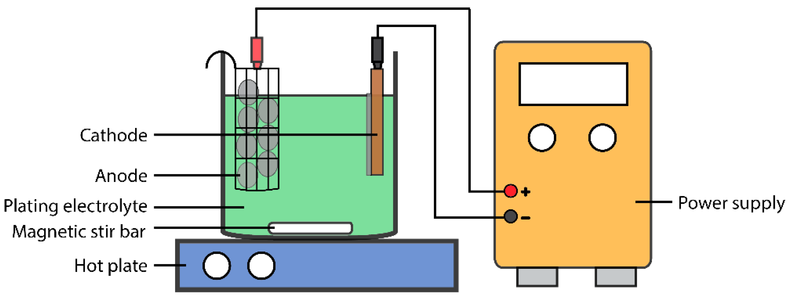 Schematic diagram of a lab-scale electroplating setup.