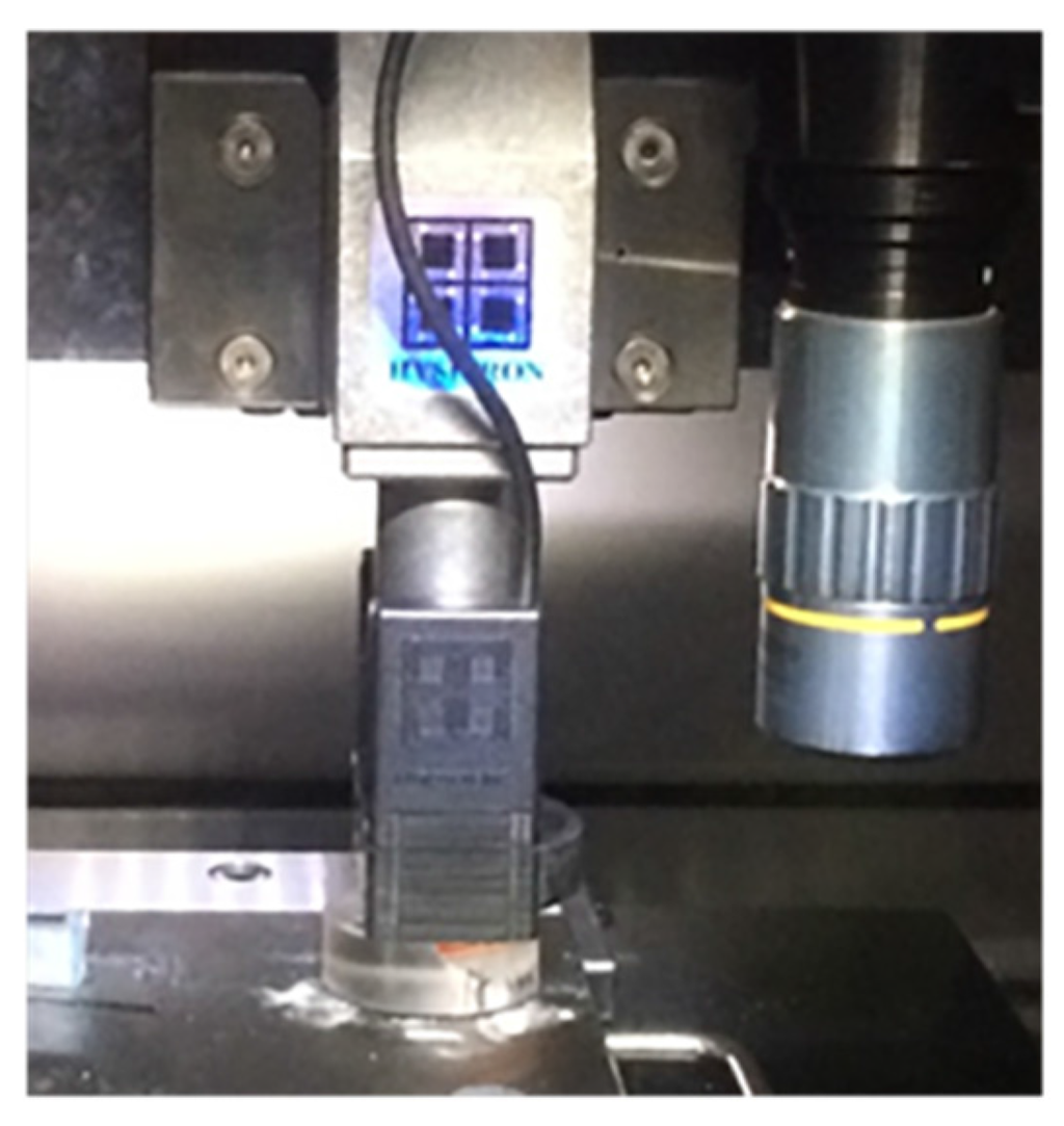 It is noteworthy that the elastic moduli and/or hardness measured are supposed to be influenced by the epoxy matrix used to embed the sample due to a high gradient deformation between the capsules and the epoxy matrix. To diminish this unexpected effect, the epoxy with a elasticity comparatively close to that of the wall material of the microcapsules was selected to ensure the compatability in mechanical response. Figure 4 shows the test set up of TriboIndenter (Hysitron, USA).