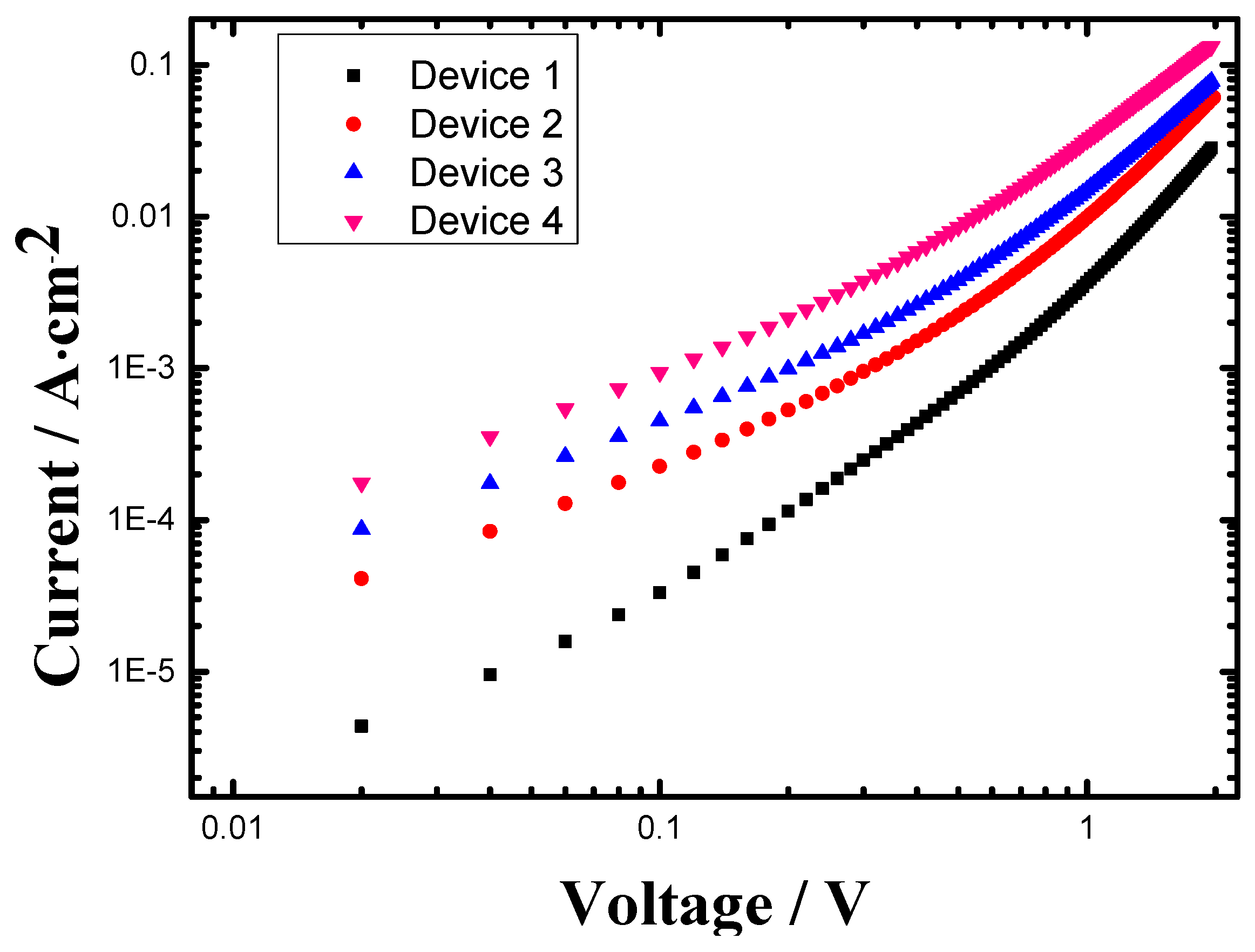 - Device 4: ITO/PEDOT:PSS/film4/LiF/Al