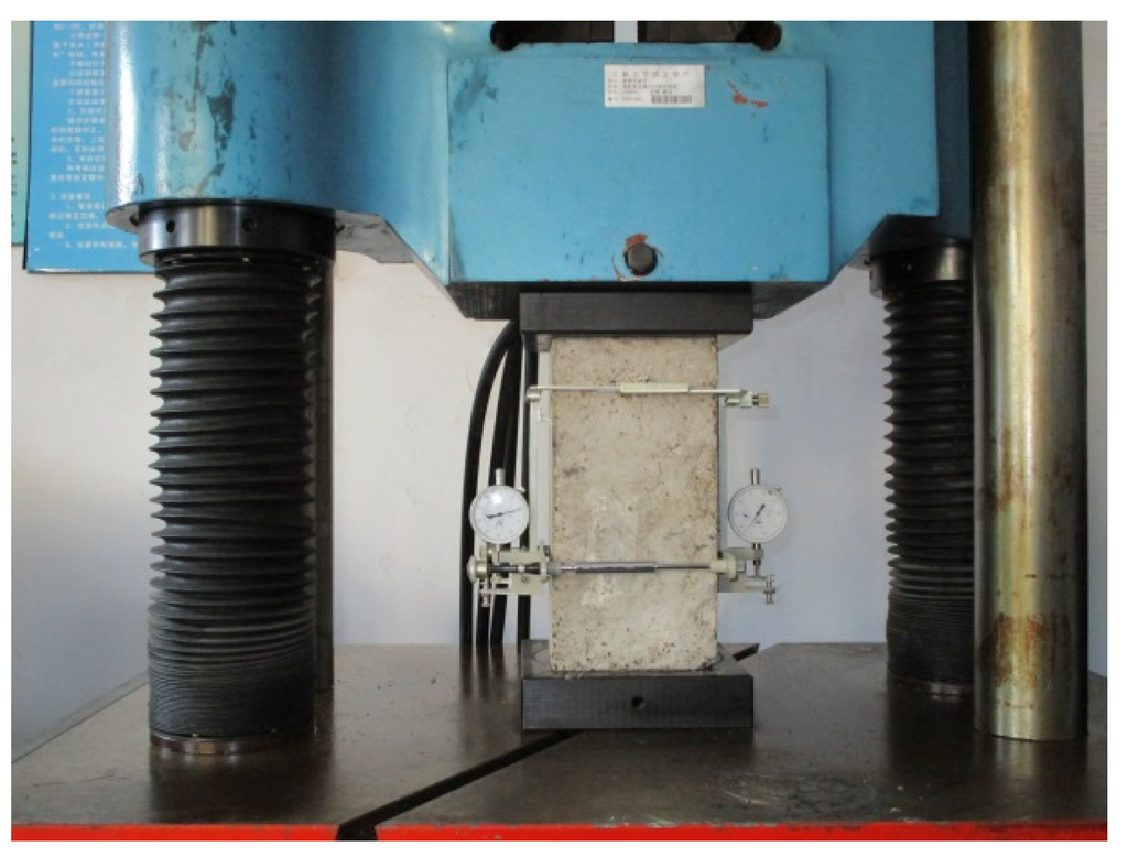 - National Standard of the People’s Republic of China. Standard for test Method of Mechanical Properties on Ordinary Concrete (GB/T 50081-2002); Ministry of Construction of the People’s Republic of China: Beijing, China, 2003. [Google Scholar]