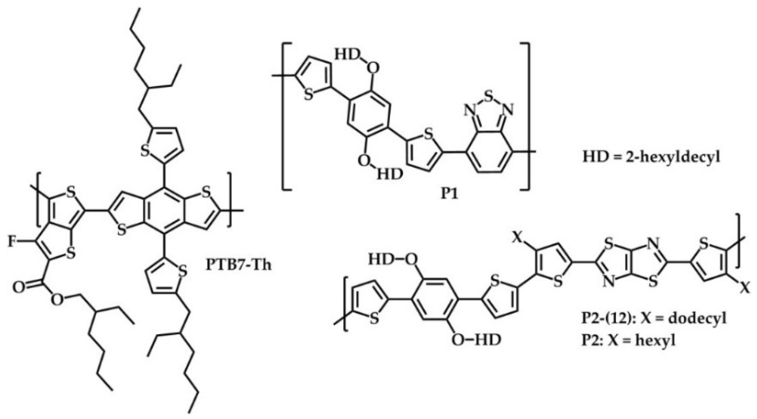 - Nguyen, T.L.; Song, S.; Ko, S.; Choi, H.; Jeong, J.; Kim, T.; Hwang, S.; Kim, J.Y.; Woo, H.Y. Benzodithiophene-thiophene-based photovoltaic polymers with different side-chains. J. Polym. Sci. A Polym. Chem. 2015, 53, 854–862. [Google Scholar] [CrossRef]