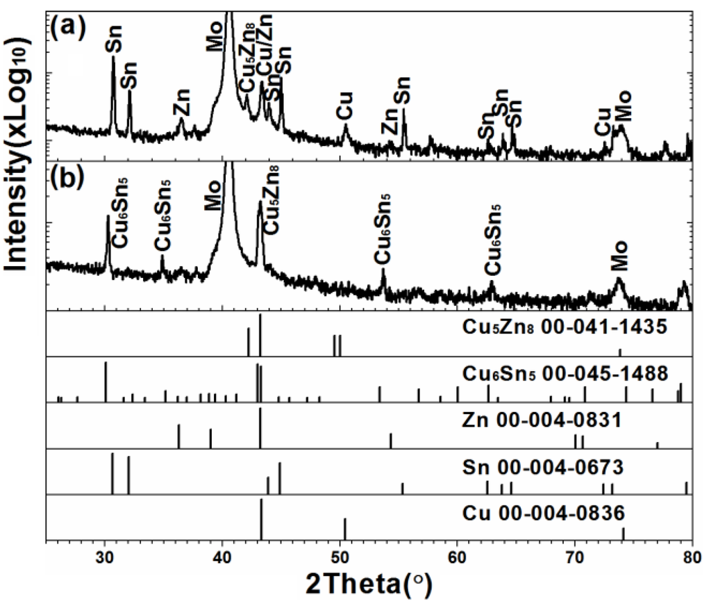 - Weber, A.; Mainz, R.; Schock, H.W. On the Sn loss from thin films of the material system Cu-Zn-Sn-S in high vacuum. J. Appl. Phys. 2010, 107, 013516. [Google Scholar] [CrossRef]