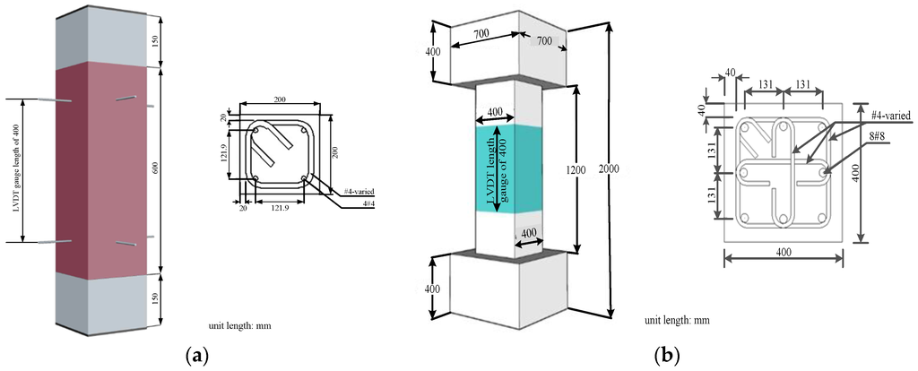 Detail of the tested specimens: (a) Small-scale column; (b) Large-scale column.