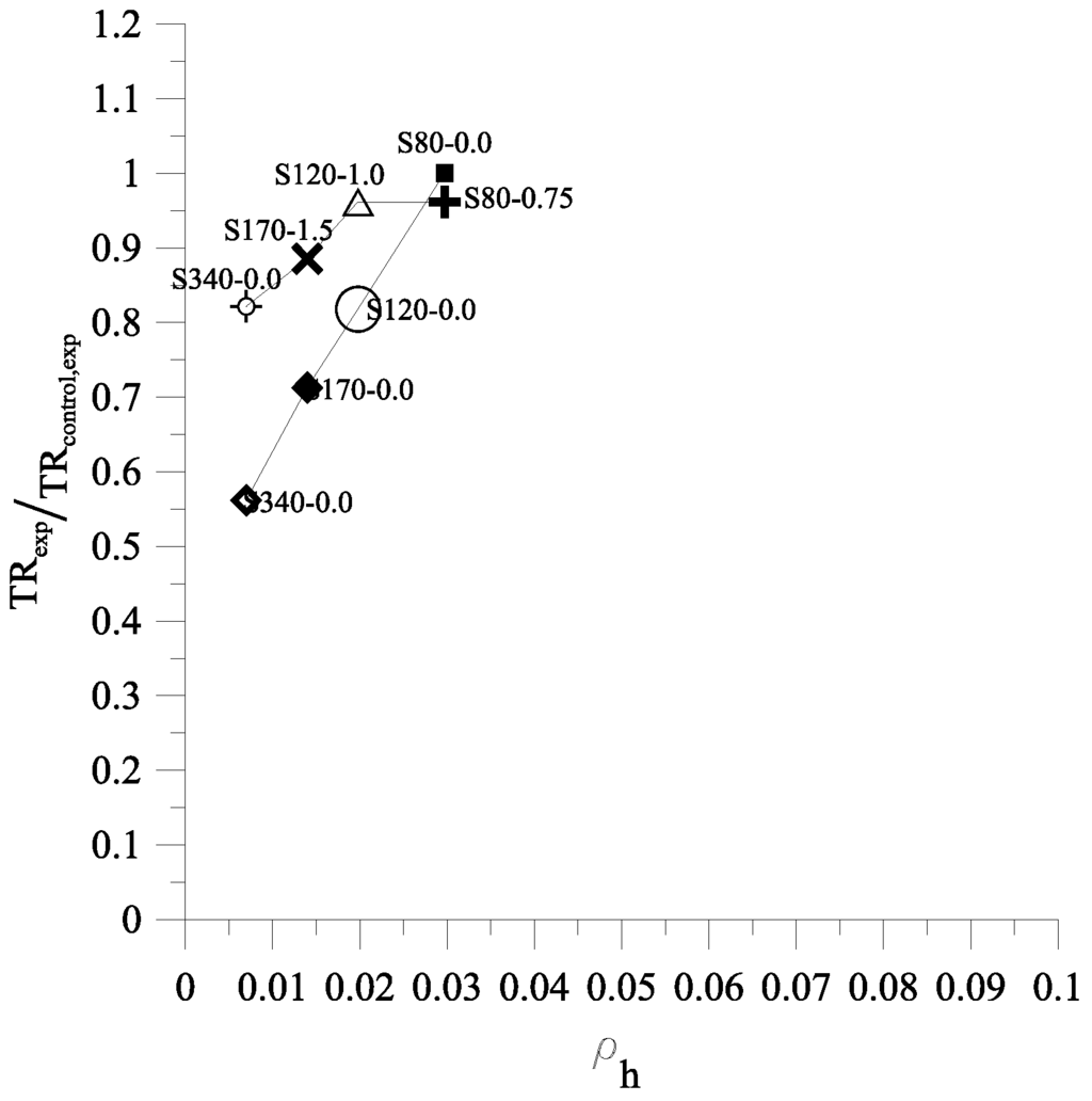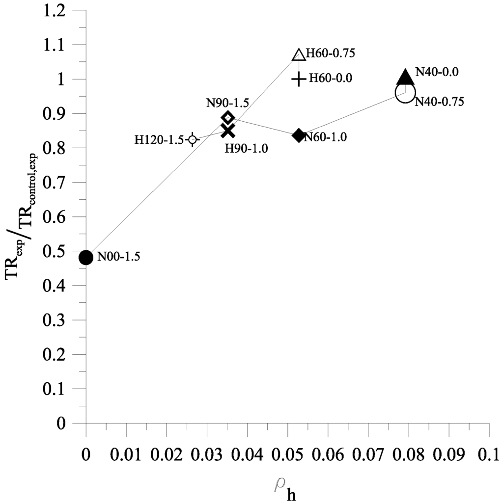 The relationship of TRexp/TRcontrol,exp and ρh for large-scale colums