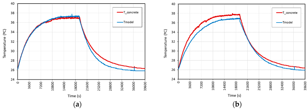- The mathematical model published in [26] was checked in laboratory conditions tests, showing a very good correlation, and therefore being applicable for this type of highly conductive concrete in the previously mentioned conditions.