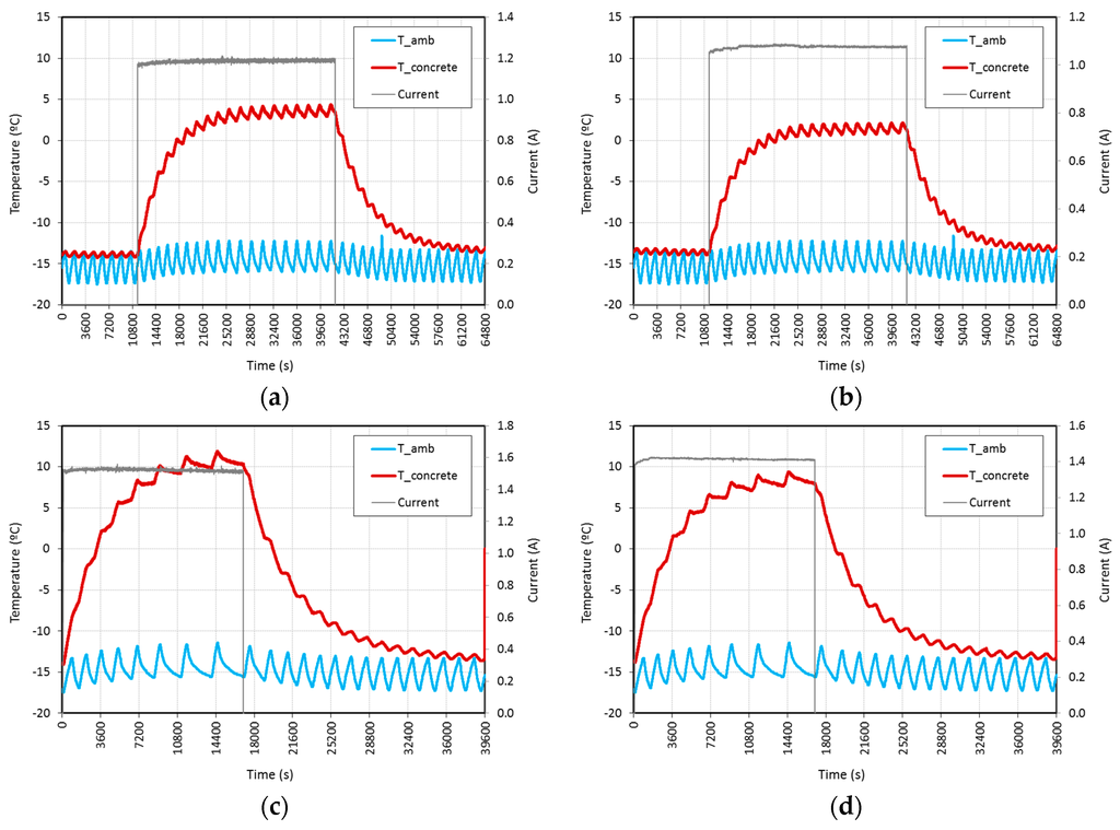 - Gomis, J.; Galao, O.; Gomis, V.; Zornoza, E.; Garcés, P. Self-heating and deicing conductive cement: Experimental study and modeling. Constr. Build. Mater. 2015, 75, 442–449. [Google Scholar] [CrossRef]