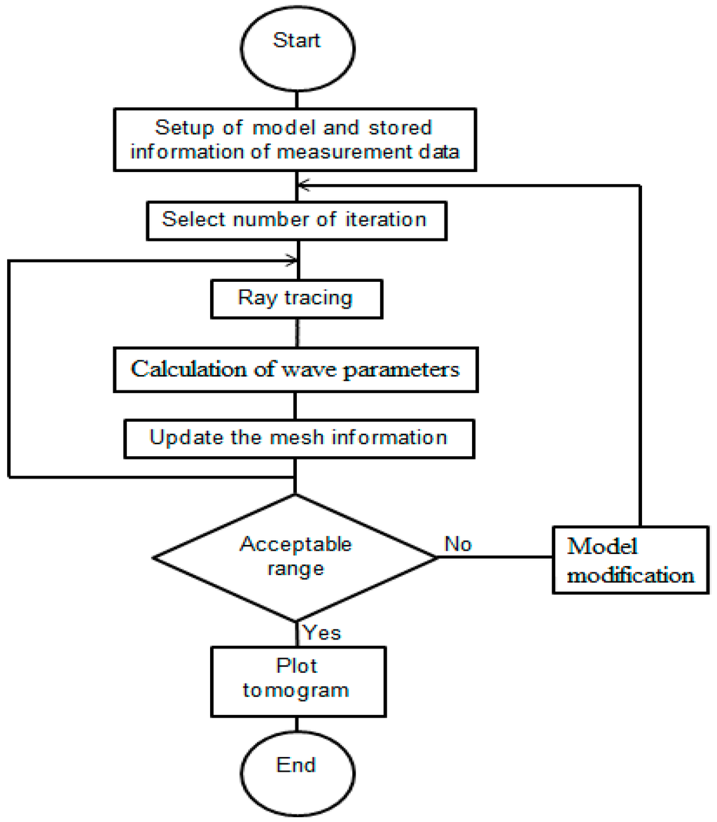 16. Kim, K.S.; Fratta, D. Travel-time tomographic imaging: Multi-frequency diffraction evaluation of a medium with a high-contrast inclusion. NDT E Int. 2010, 43, 695–705. [Google Scholar] [CrossRef]