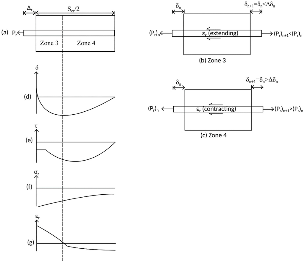 - Bond stress, τ(i) is determined using the bond-slip relationship from Comité euro-international du béton-Fédération Internationale de la Précontrainte (CEB-FIP) model code.