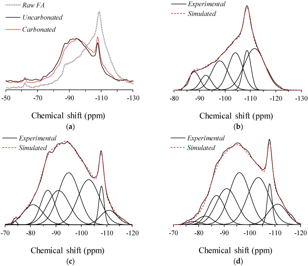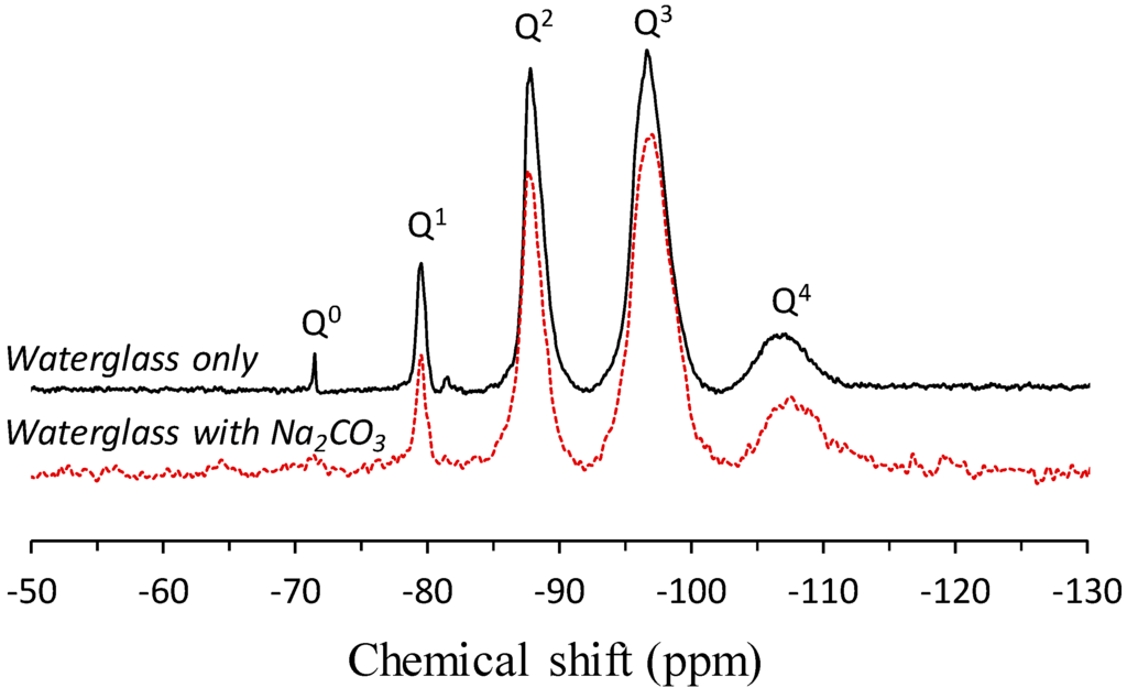 - The dissolved silanol groups (monomeric silicates) in AFA exposed to a CO2-rich environment rapidly forms Si with a higher degree of polymerization, as shown in Table 2, which shows that the carbonated AFA had fewer residual silanol groups.