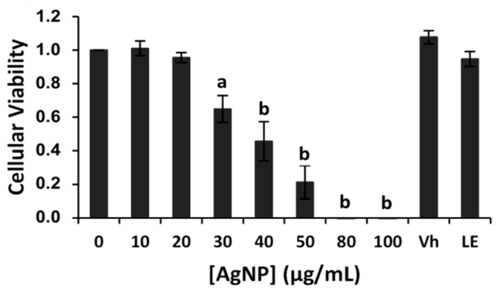 - Park, E.J.; Yi, J.; Kim, Y.; Choi, K.; Park, K. Silver nanoparticles induce cytotoxicity by a Trojan-horse type mechanism. Toxicol. In Vitro 2010, 24, 872–878. [Google Scholar] [CrossRef] [PubMed]