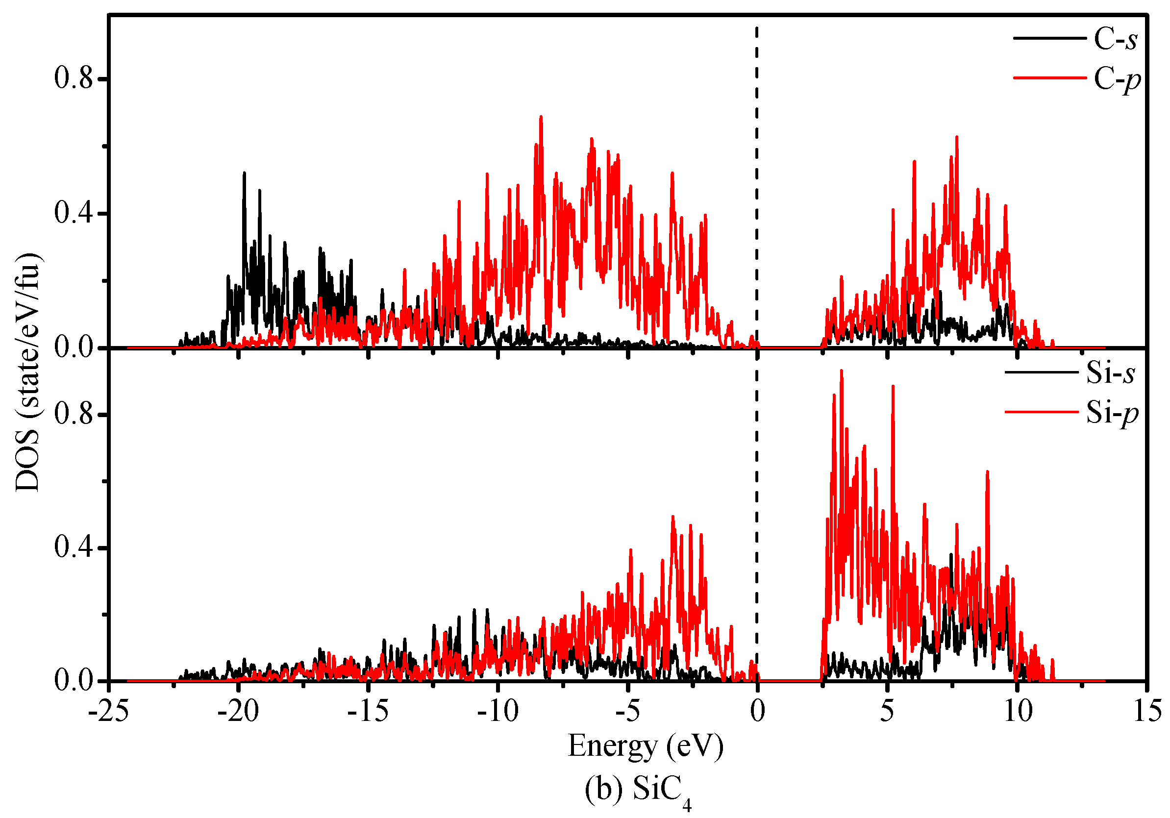 The partial density of states of SiC2 (a) and SiC4 (b).