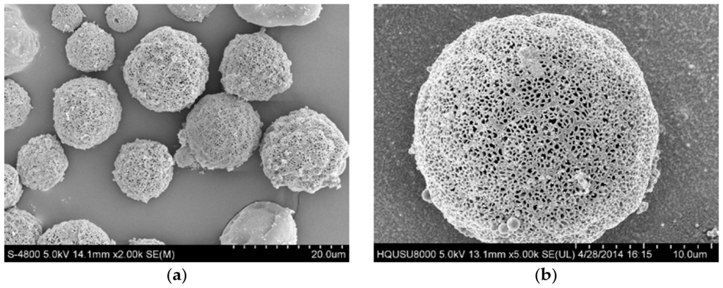 Currently, strategies to fabricate microspheres include the emulsion method [14,15,16,17], the phase separation method [18,19], the collection medium [20], and the anti-solvent approach [21]. In general, especially for the double-emulsion method, the pores were formed by selecting different pore-forming agents, such as osmosis porogens [22,23], gas foaming porogens [24,25,26], and extractive porogens [27,28,29].