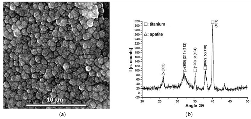 Development of calcium phosphate layers on implants surface are considered to be one of the prospective methods for improving bioactivity [10,11,12]. Different surface techniques, for example, thermal spray, physical vapor deposition, electrodeposition or sol-gel techniques, have been employed to provide metal implants with bone-bonding ability [13,14,15]. Mediaswanti et al. [16] presented a summary of the characteristics of the various coating techniques for calcium phosphate showing its own benefits and drawbacks respectively.
