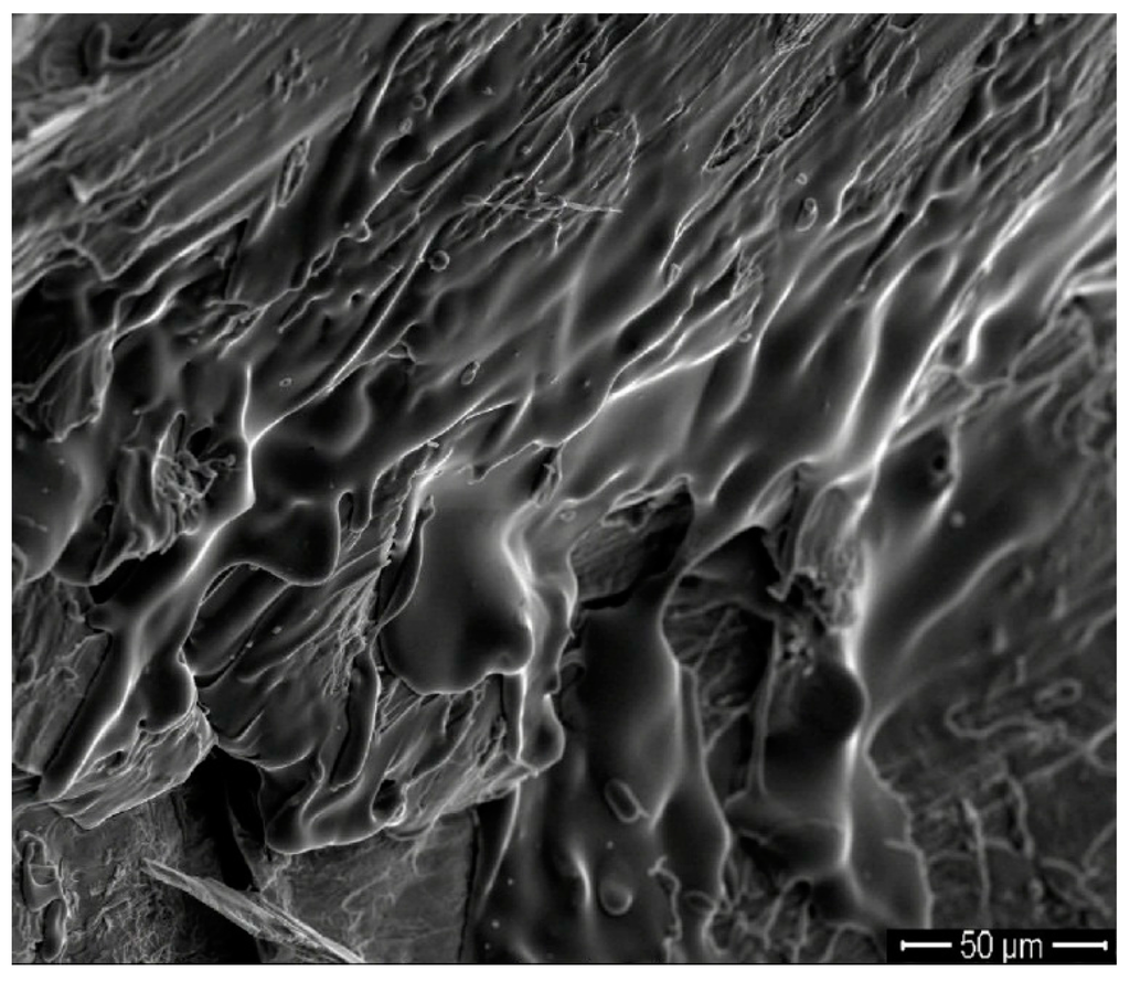 Local SEM image on the fracture surface of Zr55Al8.9Ni7.3Cu28.8 BMG.