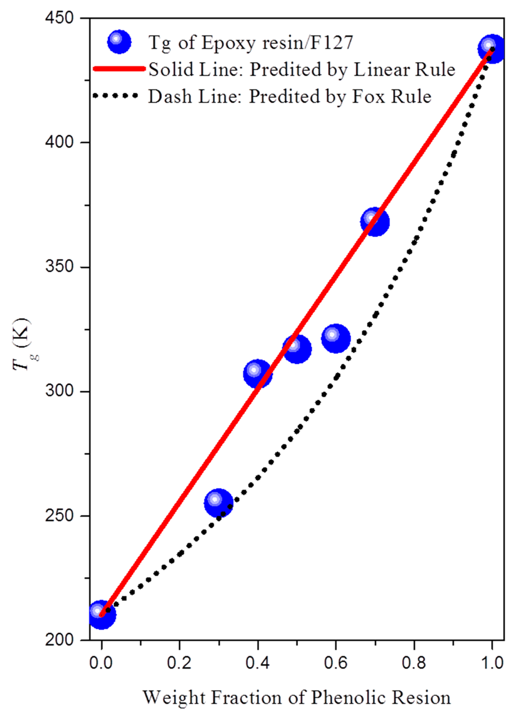 Glass transition temperatures (Tg) of epoxy resin/F127 blends at various compositions.