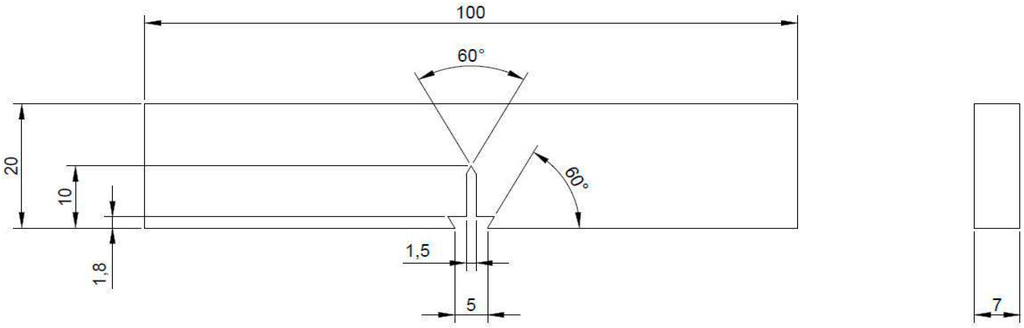 Monotonic J-integral tests were employed for studying the material’s resistance to fracture. To evaluate fracture behavior, three-point bend (TPB) specimens as shown in Figure 2 were employed for carrying out monotonic J-Resistance (J-R) tests in E80. The nominal width of TPB specimens used was 20 mm. The nominal thickness was 7 mm. Specimens were fabricated by wire-cut electro-discharge machining (EDM) in order to ensure the high levels of precision and alignments demanded for fracture mechanics specimens. Three specimens were used for the tests. All the specimens were equipped with integral knife-edges for compliance-based crack length measurement.