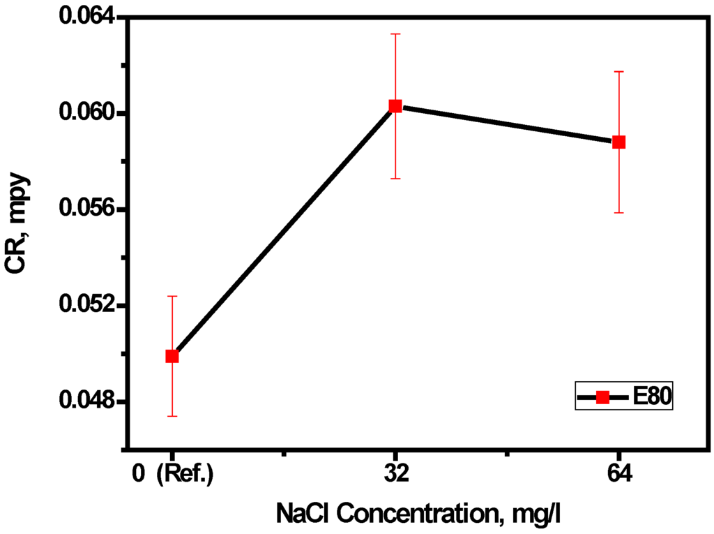 3.1. Effect of Chloride on Mass Loss of MAS in E80