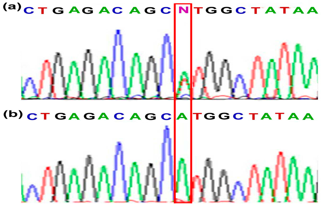 KDR mutation (g. 55972974 T > A) was validated by Sanger DNA sequencing of cSCC specimens: (a) heterozygous mutation (b) homozygous mutation.