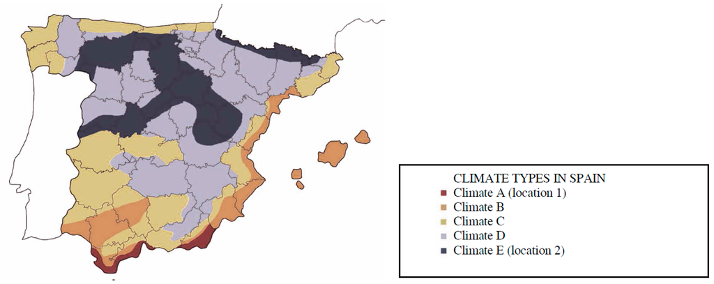 - CTE_DB-HE. Código Técnico de la Edificación. Documento Básico de Ahorro de Energía. Available online: http://161.111.13.202/apache2-default/cte/CTE_DB-HE.pdf (accessed on 19 April 2016).