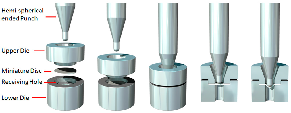 - Kameda, J.; Mao, X. Small-punch and TEM-disc testing techniques and their application to characterization of radiation damage. J. Mater. Sci. 1992, 27, 983–989. [Google Scholar] [CrossRef]