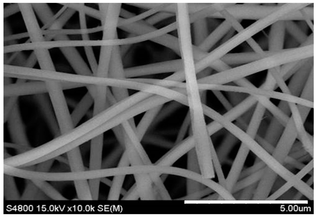 BGs have been commonly used in either bulk or powder form. Several researchers have demonstrated that cells interact more strongly with nanofibers [3,4,5]. Hence, many studies have focused on the preparation of fibrous BG [6,7,8]. Orefice et al. [9] utilized a sol-gel method to prepare bioactive glass fibers. Clupper et al. proved that the fiber structure of BG could enhance cellular attachment and spreading [10]. Moreover, Kim found that BG nanofibers could accelerate apatite formation on the surface of the nanofibers in a simulated body fluid (SBF) environment [11].