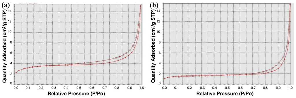 N2 adsorption–desorption isotherm of (a) MBGNFs and (b) MFBs.