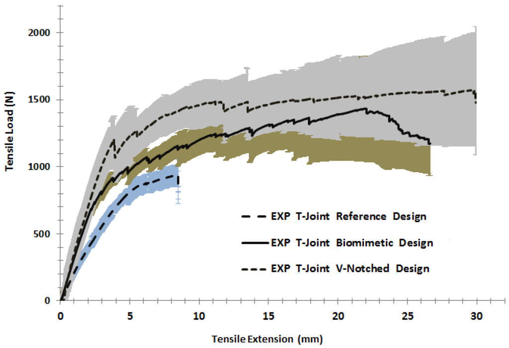 - Thummalapalli, V.K.; Donaldson, S.L. Biomimetic Composite Structural T-joints. J. Bionic Eng. 2012, 9, 377–384. [Google Scholar] [CrossRef]