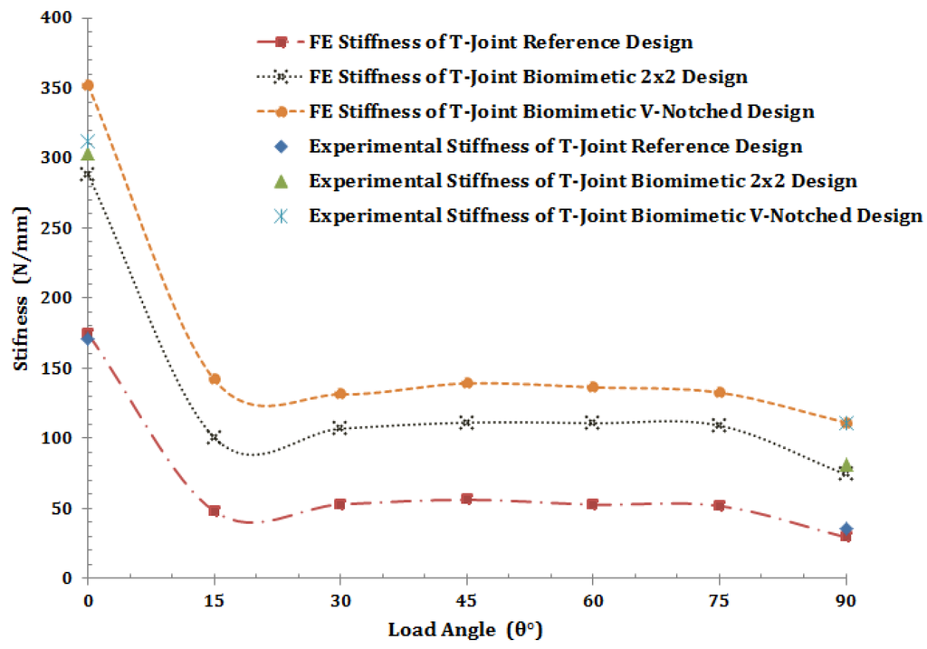6.4. Stiffness Evaluation of Biomimetic T-Joint Designs