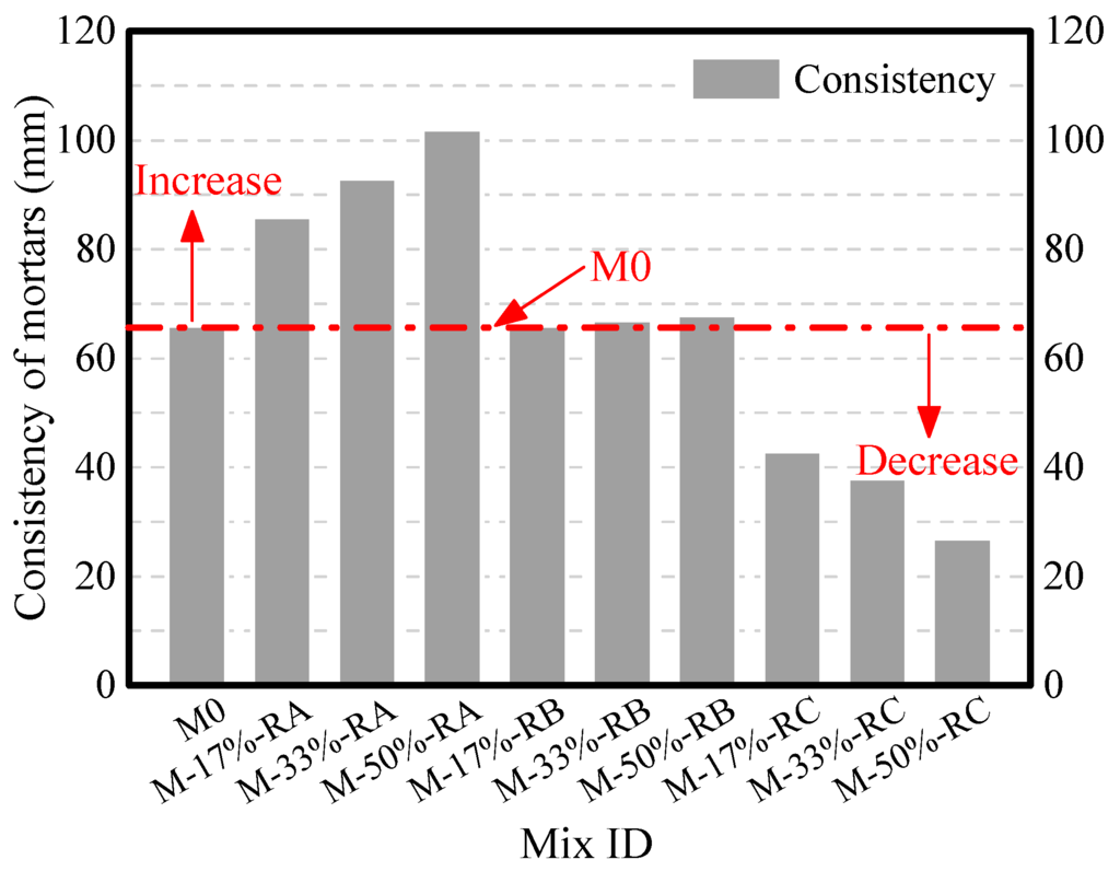 3.1. Properties of Fresh Mortars