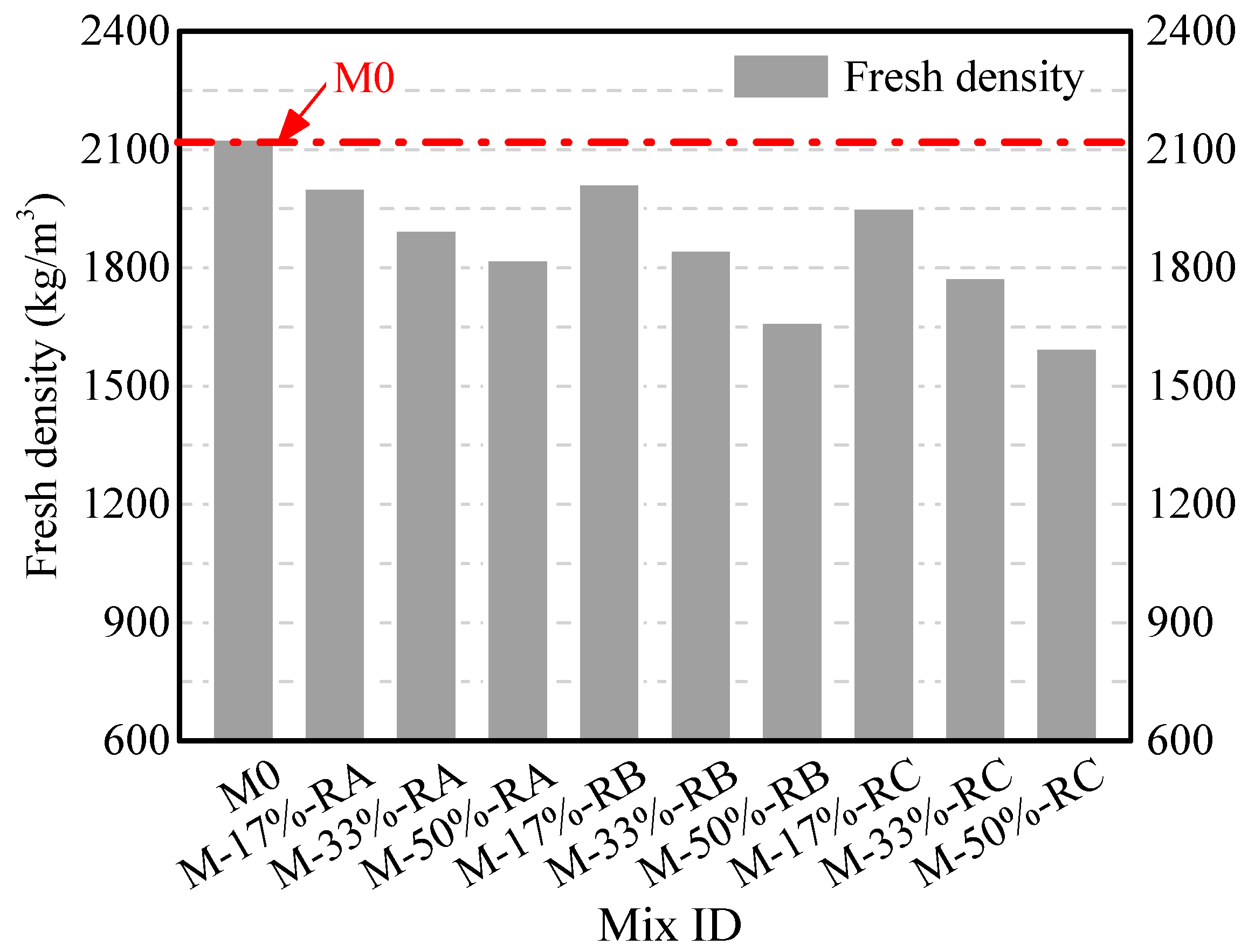 Fresh density of crumb rubber mortars.