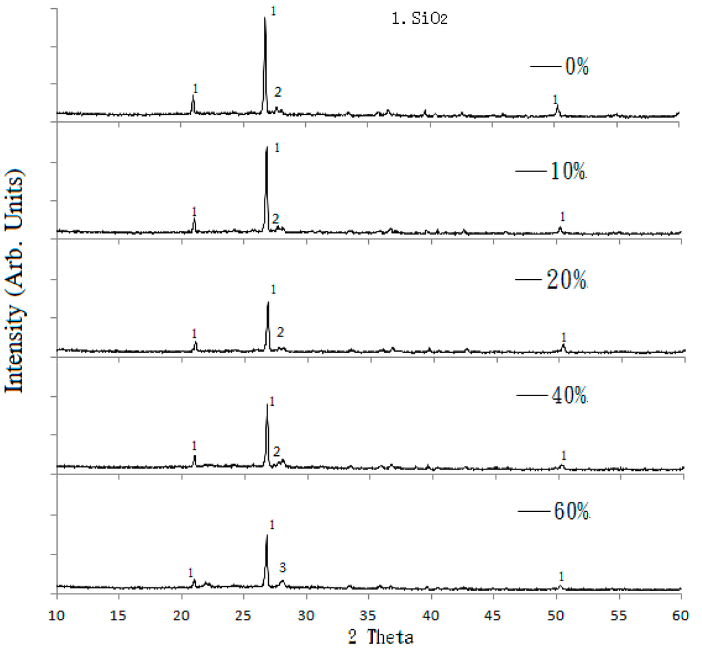 16] spotted dense glass-ceramics composite on SSA/glass ceramics at the temperature between 1120 and 1140 °C. The crystalline phases of quartz (SiO