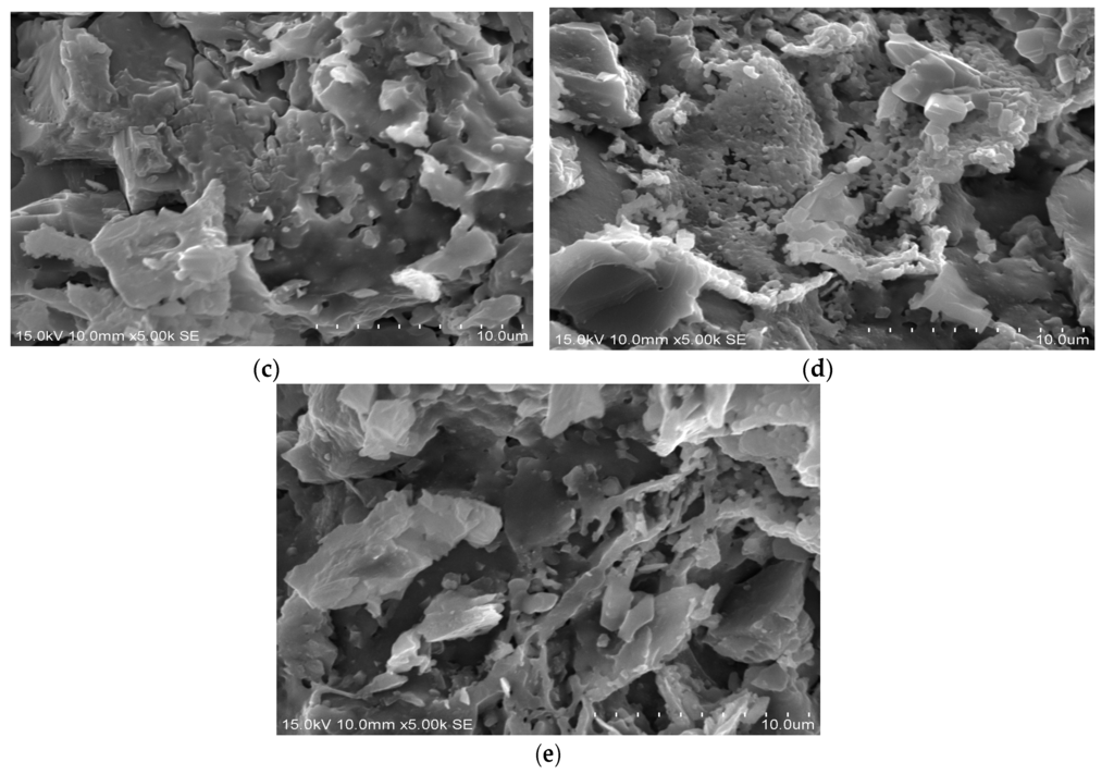 21]. Furthermore, a Shimadzu X-ray diffractometer (model XRD-6000) (Tokyo, Japan) was used for X-ray diffraction (XRD) analysis at a scan rate of 2°/min, a diffraction angle (2θ) of 10 to 60 degrees, an electric current of 30 mA, and an operating voltage of 40 kV. Scanning electron microscopy (SEM) equipment (model S-4700, Hitachi, Tokyo, Japan) was used to study the microstructure of the reclaimed tile specimens.