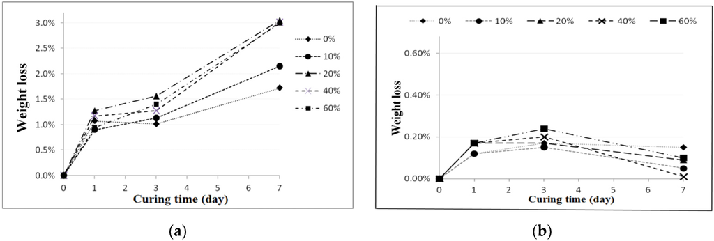 19] (Environmental Protection Agency, Washington, DC, USA). TCLP test results showed that the leached metal concentrations of these materials complied with the requirements set by the Environmental Protection Agency of Taiwan, as shown in