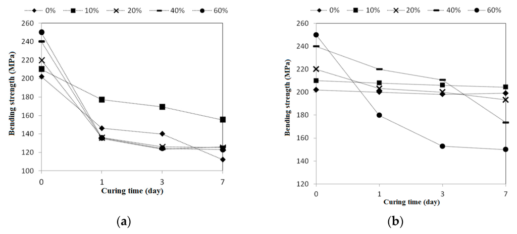 13] studied the influences of kiln temperature and the amount of nanomaterial additive on the properties of SSA tiles and concluded that tile bending strength increased with increasing temperature when kiln temperatures were lower than 1100 °C, while both bending strength and firing shrinkage decreased as temperature went beyond 1150 °C.