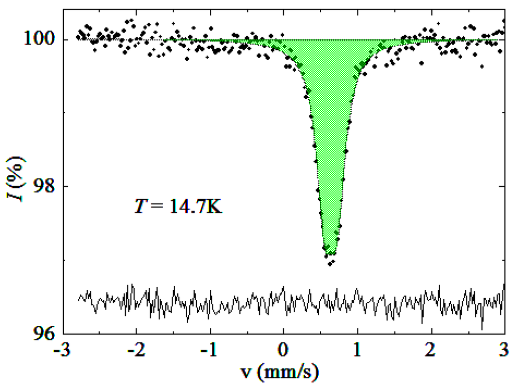 - Matsnev, M.E.; Rusakov, V.S. SpectrRelax: An application for Mössbauer spectra modeling and fitting. AIP Conf. Proc. 2012, 1489, 178. [Google Scholar] [CrossRef]