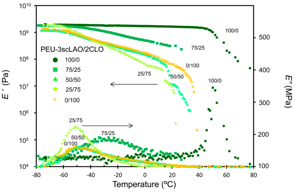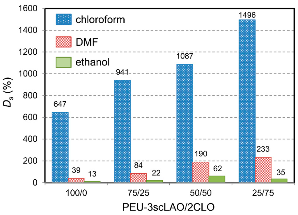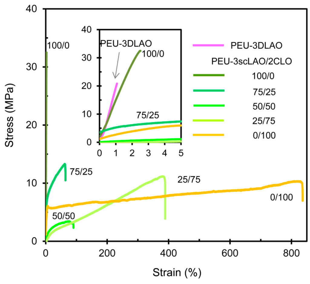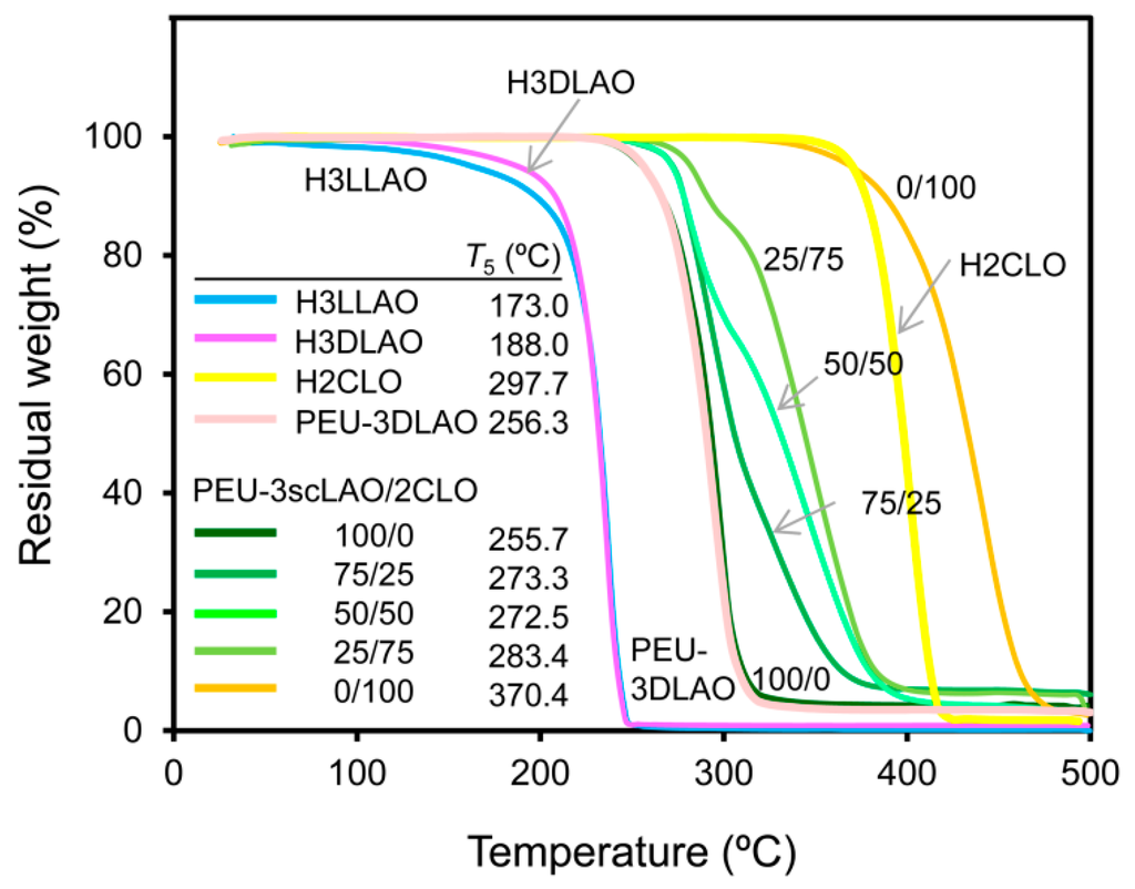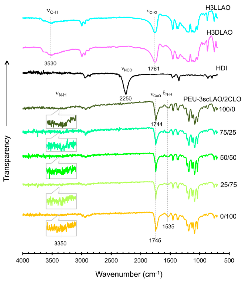 3.1. Polymer Network Formation of PEU-3scLAO/2CLOs