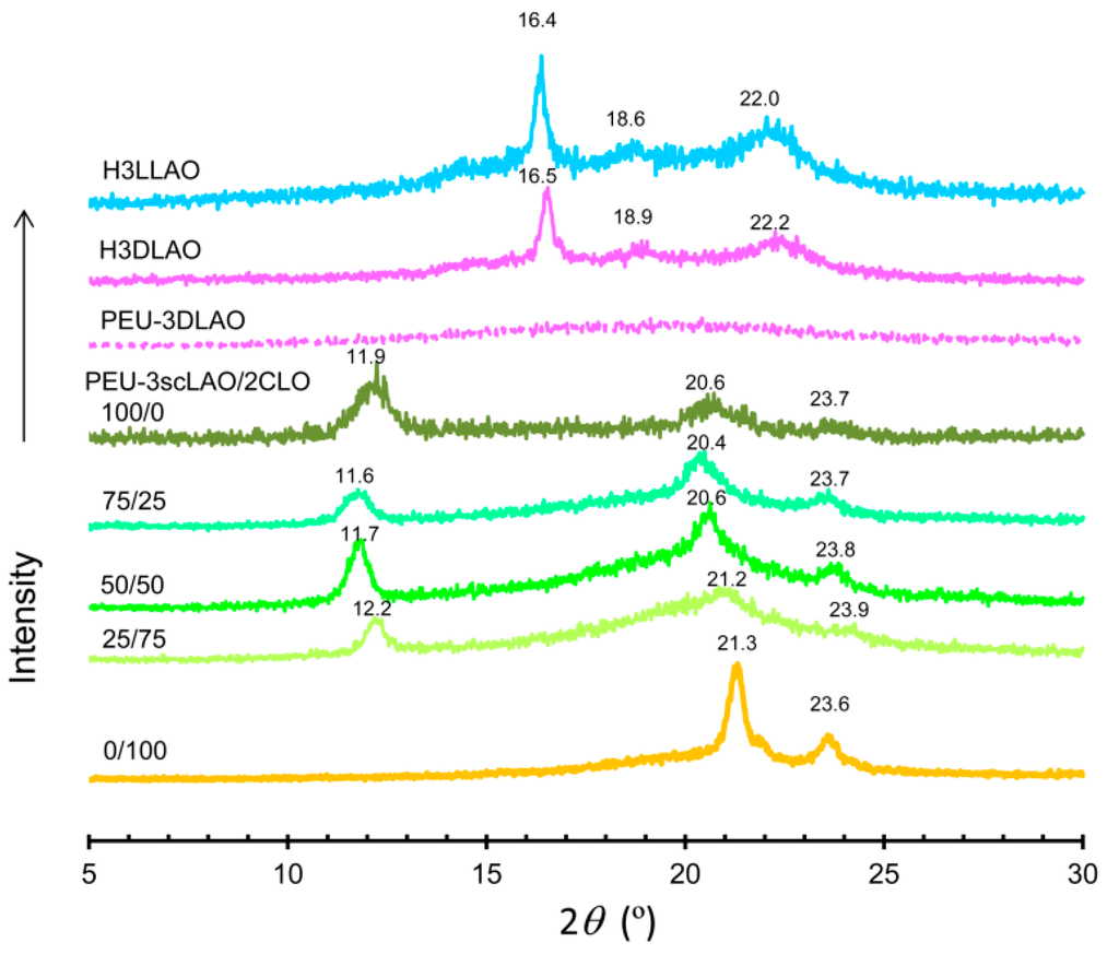3.2. Stereocomplex Formation in PEU-3scLAO/2CLOs