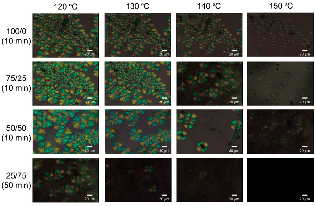 - Na, B.; Zhu, J.; Lv, R.; Ju, Y.; Tian, R.; Chen, B. Stereocomplex formation in enantiomeric polylactides by melting recrystallization of homocrystals: Crystallization kinetics and crystal morphology. Macromolecules 2014, 47, 347–352. [Google Scholar] [CrossRef]