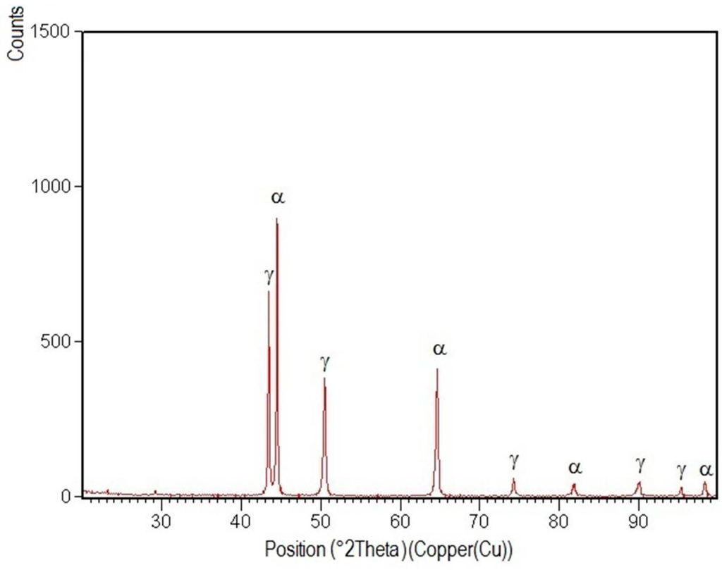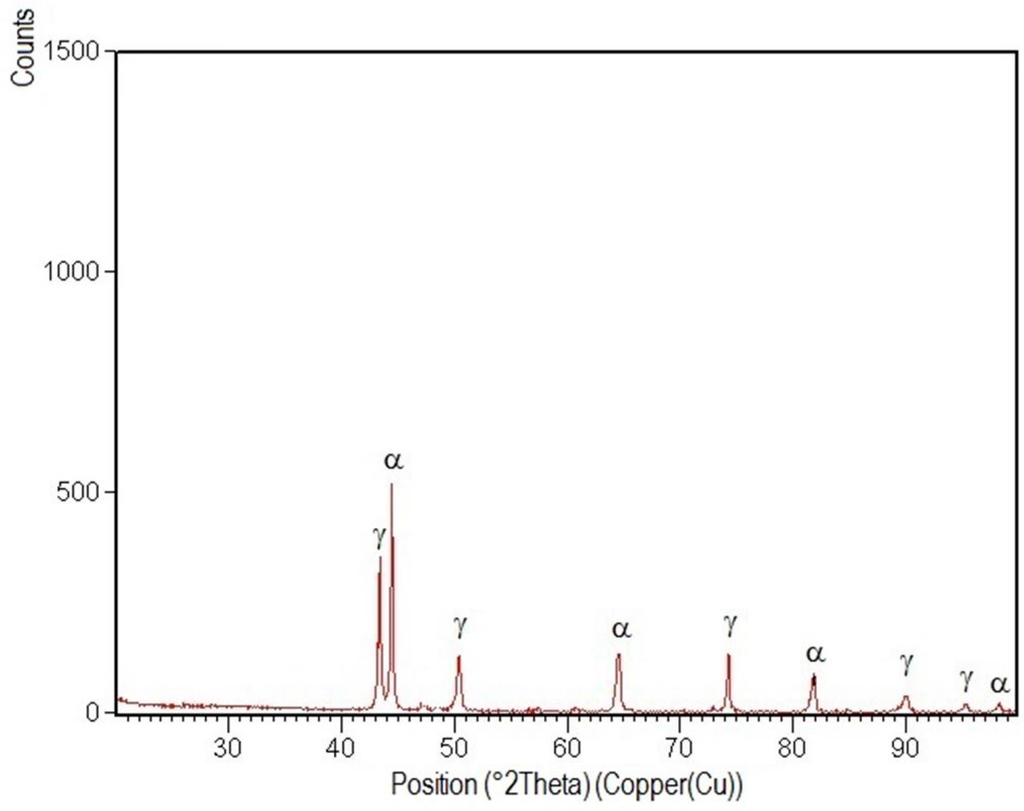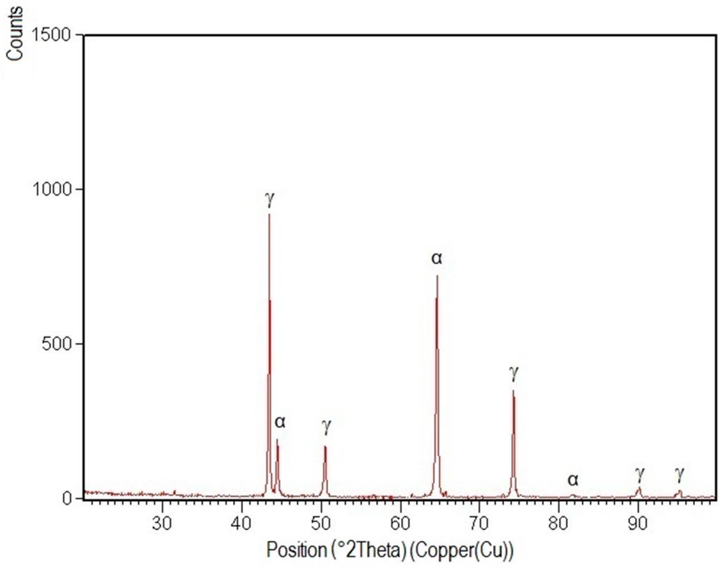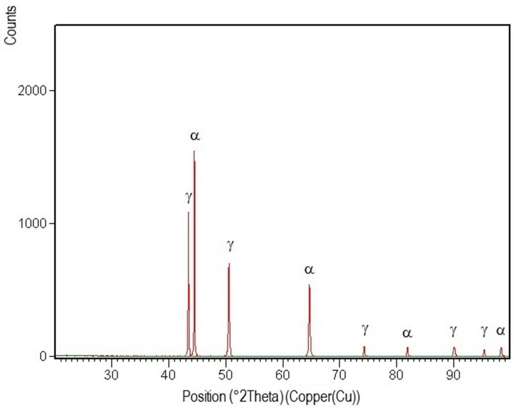 XRD patterns specific to the welded joint areas are shown in Figure 12, Figure 13, Figure 14, Figure 15 and Figure 16.