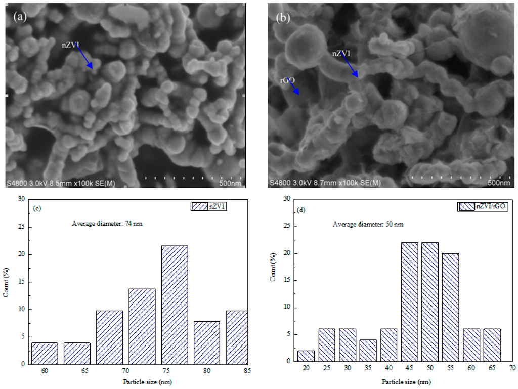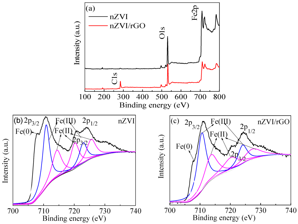 18]. The reduced graphene oxide-supported nanoscale zero-valent iron (nZVI/rGO) composites have been considered simple and effective for the treatment of contaminants, such as cadmium, uranium, arsenic and trichloroethylene [