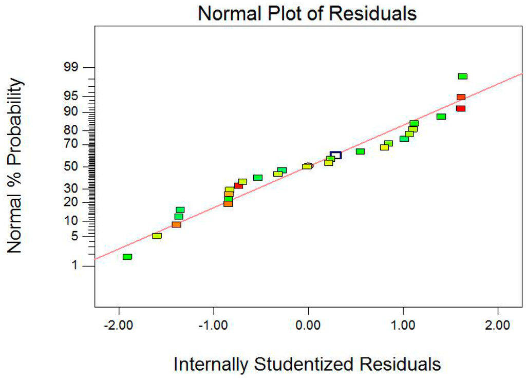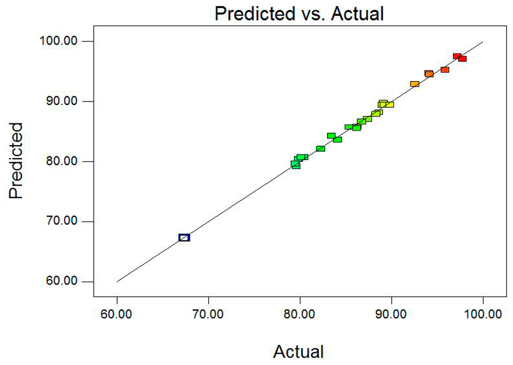 30]. Box–Behnken design is a spherical, revolving RSM design that consists of a central point and the middle points of the edges of the cube circumscribed on the sphere [